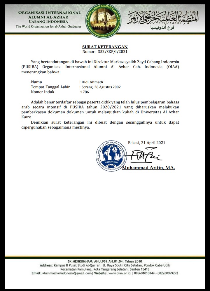 Nama Saya Didi Ahmadi, saya tinggal di provinsi Banten kota serang. Saya telah mengikuti seleksi penerimaan mahasiswa baru timur tengah di kementerian agama dan Alhamdulillah saya lolos untuk melanjutkan kuliah di universitas Al azhar mesir. saya harus membayar biaya pemberangkatan untuk bisa melanjutkan belajar saya Sebesar Rp. 15.000.000 untuk tiket pesawat dan pemberkasan visa. Namun saya terkendala ekonomi keluarga saya pas pasan, hanya cukup untuk makan sehari hari,terkadang kurang.