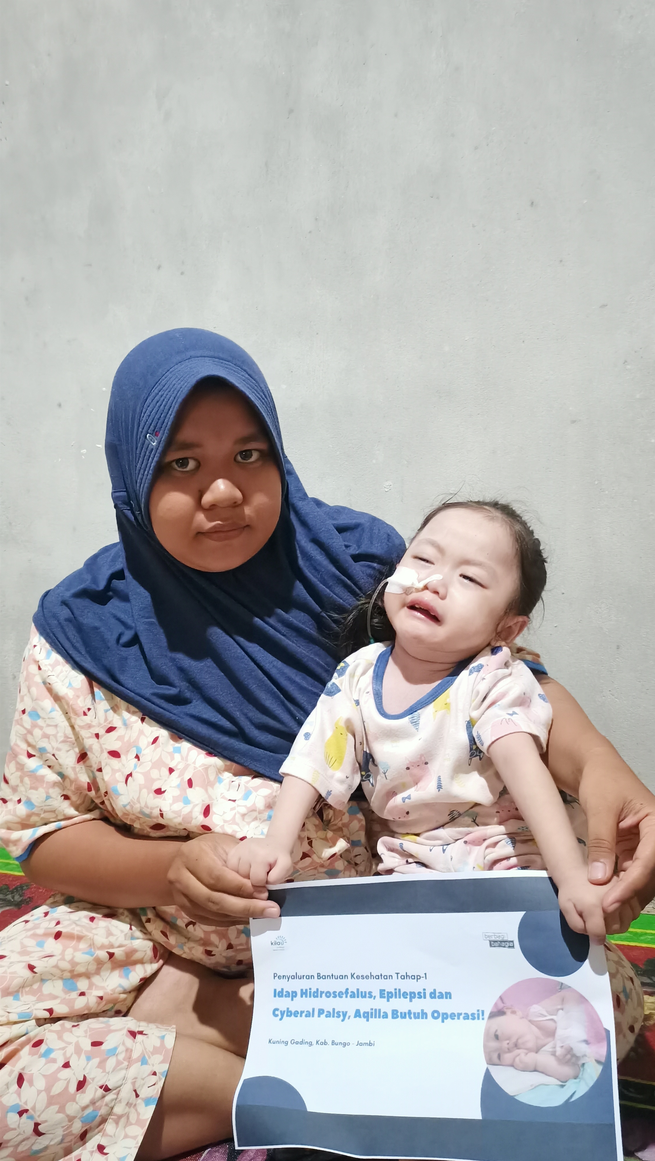 Sahabat, Aqilla berharap ada pertolongan dari sahabat baik semuanya agar ia bisa melepas rasa sakit hidrosefalusnya.