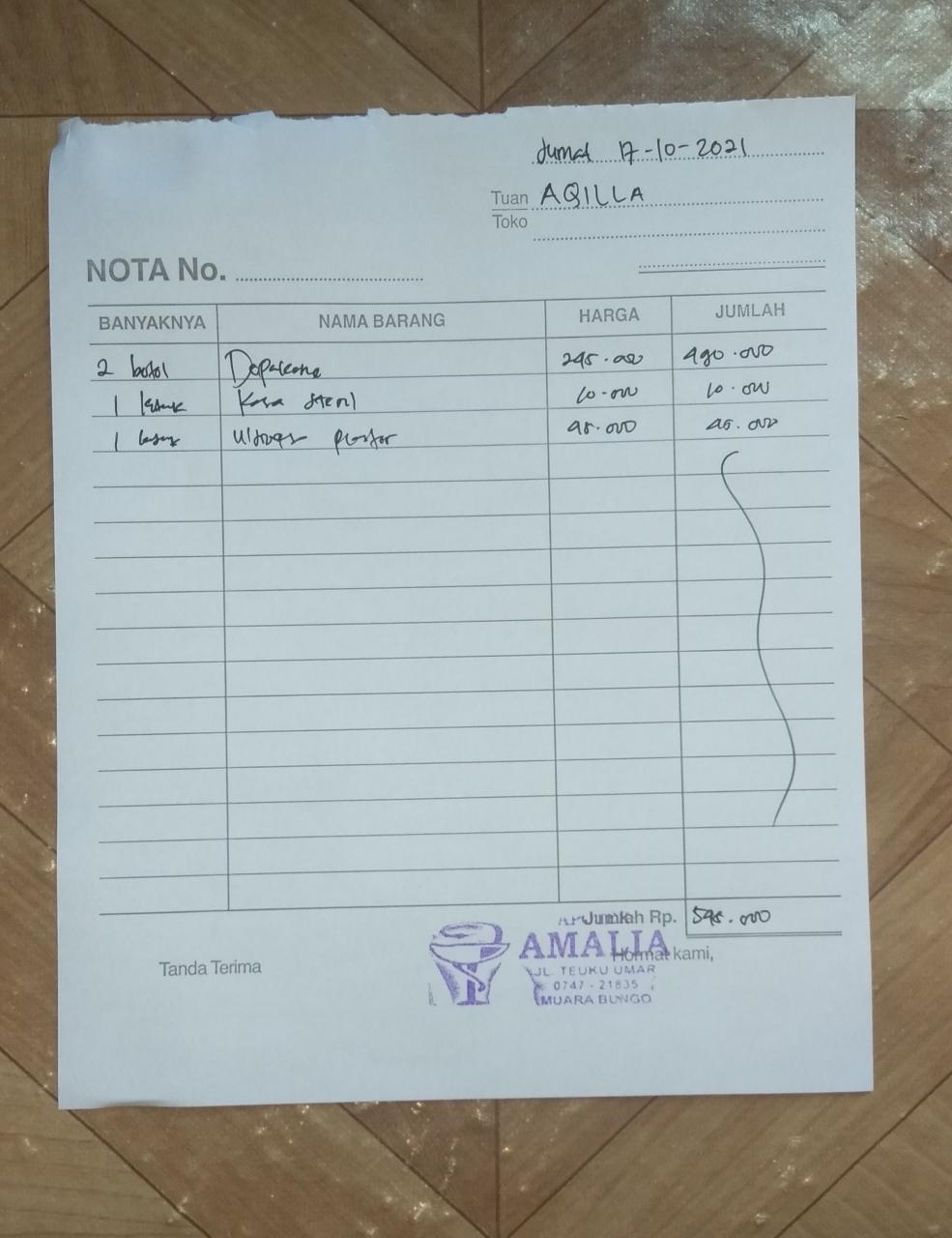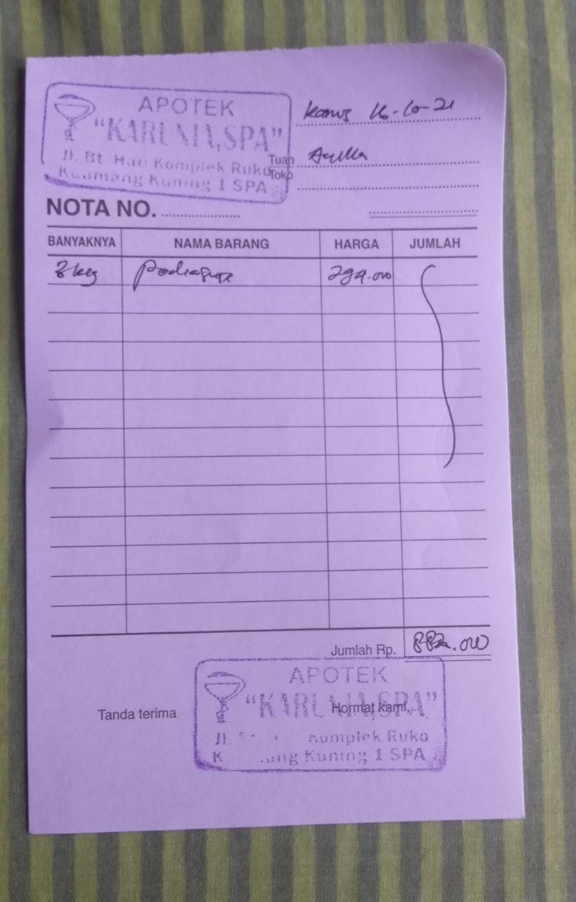 berikut bukti penggunaan donasi untuk pembelian obat dan susu.