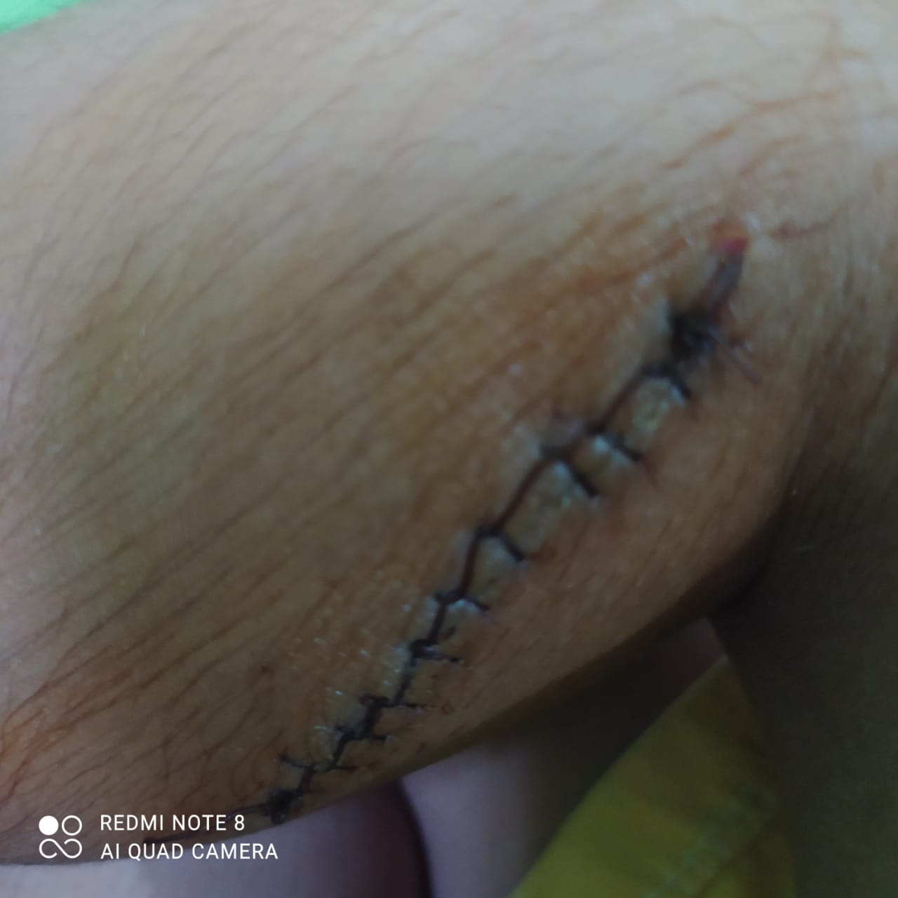 Awal kejadiannya saat dia bermain petak umpet bersama temannya dirumah. Dia bersembunyi di kamar mandi yang pintunya memiliki kaca, kemudian saat pintu kamar mandi tersebut digedor oleh temannya kaca yang ada di pintu pecah.